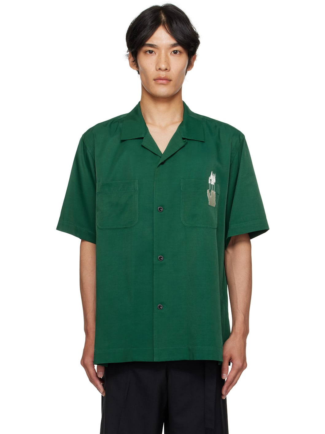 Rayon- and cotton-blend twill shirt. · Spread collar · Button closure · Patch pockets and embroidered graphic at chest · Vented side seams · Text embroidered at back Part of the Where The Wild Things Are capsule. Supplier color: Green Body: 65% rayon, 35% cotton. Trim 1: 100% rayon. Trim 2: 100% cupro. Made in Japan 252445M192008