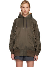 Khaki Nylon Twill Hoodie