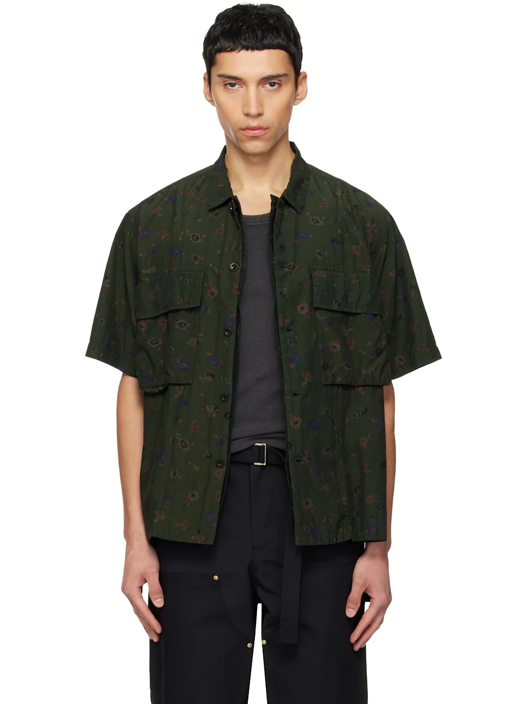 Cotton-blend poplin shirt. · Floral pattern printed throughout · Spread collar · Layered button closures · Flap pockets at chest · Vented side seams · Pleats at back yoke Supplier color: Green Body: 55% rayon, 45% cotton. Trim: 100% cotton. Made in Japan 261445M192004