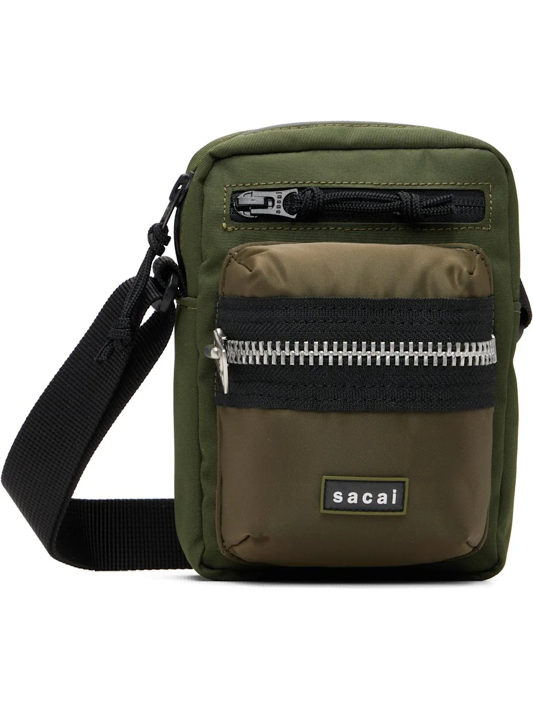 Padded canvas messenger bag. · Adjustable webbing crossbody strap · Zip pockets and rubberized logo patch at face · Patch pocket at back face · Zip closure · Patch pocket at interior · Ripstop lining · H7" x W3.5" x D4.5" Supplier color: D/Khaki Body: 100% polyester. Trim: 100% nylon. Lining: 100% nylon. Made in Japan 261445M170000