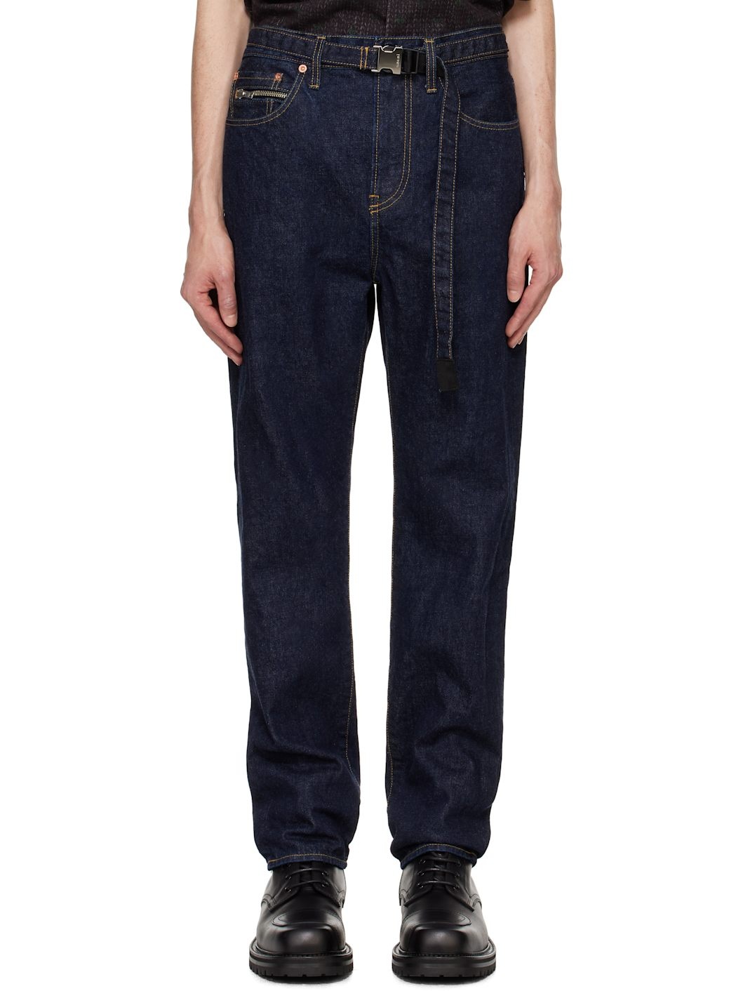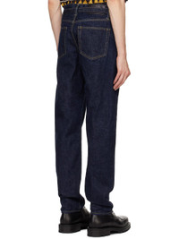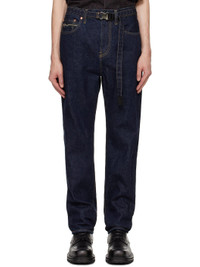 Non-stretch denim jeans. · Belt loops and detachable press-release belt · Five-pocket styling · Zip-fly · Leather logo patch at back waistband · Logo-engraved silver- and copper-tone hardware · Contrast stitching in tan Supplier color: Indigo