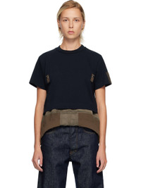 Navy Cotton Jersey & Nylon Twill T-shirt