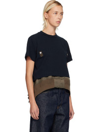 Cotton jersey T-shirt. · Paneled construction · Rib-knit crewneck and hem · Press-stud tabs at chest · Nylon twill panel at hem · Pen slots at sleeve Supplier color: Navy/D/Khaki Body 1: 100% cotton. Body 2: 100% nylon. Trim: 55% polyester, 44% cotton, 1% polyurethane. Lining 1: 100% polyester. Lining 2: 100% cupro. Made in Japan 252445F110016
