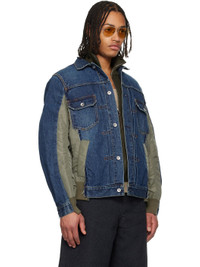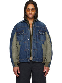 Non-stretch denim and nylon twill jacket. · Fading and raw edges throughout · Spread collar · Button closure · Flap pockets at chest · Tucks and welt pockets at front · Partially rib-knit hem and cuffs · Zip vent at side seams · Utility pocket at sleeve Supplier color: Blue Body 1: 100% cotton. Body 2: 100% nylon. Trim 1: 55% polyester, 44% cotton, 1% polyurethane. Trim 2: 100% polyester. Made in Japan 261445M177001