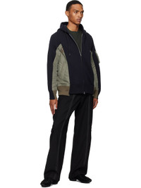 Cotton-blend fleece and nylon twill hoodie. · Paneled construction · Drawstring at hood · Two-way zip closure · Press-stud tabs at chest · Welt pockets at waist · Rib-knit hem and cuffs · Raglan sleeves · Utility pocket and pen slots at sleeve · Logo-engraved silver-tone hardware Supplier color: Navy/Khaki Body: 62% cotton, 38% polyester. Trim 1: 100% nylon. Trim 2: 55% polyester, 44% cotton, 1% polyurethane. Trim 3: 100% cotton. Fill: 100% polyester. Made in Japan 252445M202011