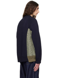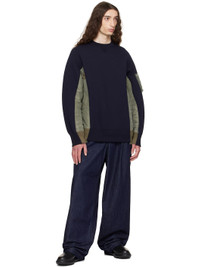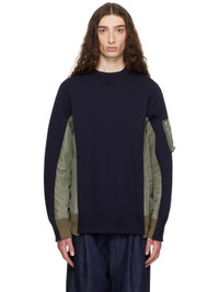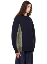 Cotton-blend jersey and nylon twill sweatshirt. · Paneled construction · Rib-knit crewneck, hem, and cuffs · Press-stud tabs at front · Welt pockets · Utility pocket at sleeve Supplier color: Navy/Khaki Body 1: 62% cotton, 38% polyester. Body 2: 100% nylon. Trim 1: 55% polyester, 44% cotton, 1% polyurethane. Trim 2: 100% cotton. Fill: 100% polyester. Made in Japan 252445M204002