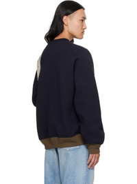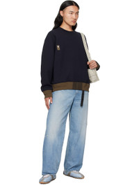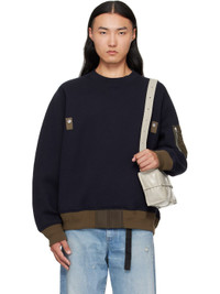 Double-faced cotton-blend fleece sweater. · Rib-knit crewneck, hem, and cuffs · Logo-engraved press-stud tab at chest · Nylon twill trim at front hem · Dropped shoulders · Utility pocket and pen slots at sleeve Supplier color: Navyxd/Khaki Body: 62% cotton, 38% polyester. Trim 1: 100% nylon. Trim 2: 55% polyester, 44% cotton, 1% polyurethane. Trim 3: 100% cotton. Made in Japan 252445M204009