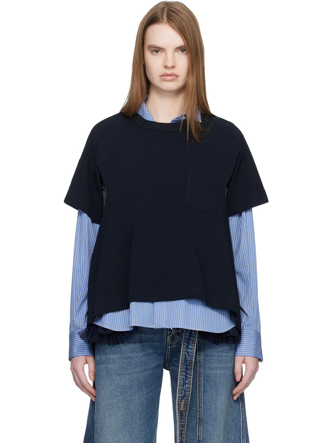 Navy Light Weight Denim & Cotton Jersey T-shirt