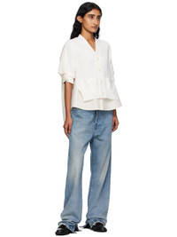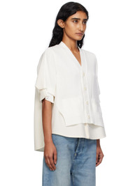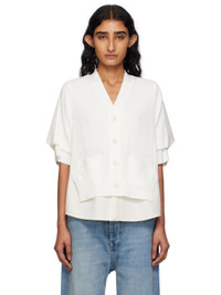 Knit cotton-blend and wool-blend bonded jersey cardigan. · Paneled and layered construction · Y-neck · Button closure · Welt pockets at waist · Partial rib-knit trim hem and cuffs · Buttoned cuffs · Knife pleats and box pleats at back yoke · Partial mesh lining Supplier color: Off white Body 1: 57% cotton, 43% polyester. Body 2: 70% polyester, 30% wool. Trim: 100% polyester. Lining: 100% polyester. Made in Japan 252445F095003