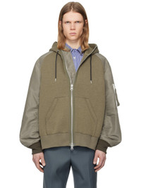 Taupe Sponge Sweat x Nylon Twill Hoodie