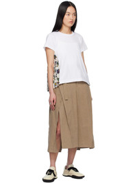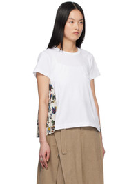 Paneled cotton jersey and polyester satin T-shirt. · Rib-knit crewneck · Patch pocket at chest · Droptail hem · Knife pleats at sides and back yoke · Graphics and text printed at back · Gathering at back yoke Supplier color: Ivory Body 1: 100% cotton. Body 2: 100% polyester. Made in Japan 251445F110007