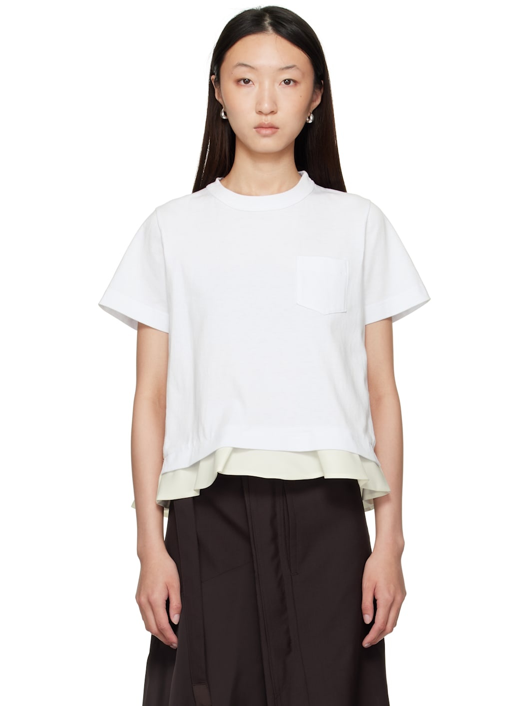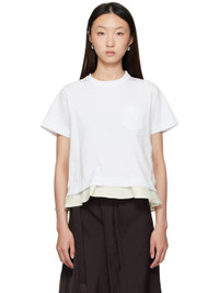 Cotton jersey and nylon twill T-shirt. · Paneled construction · Rib-knit crewneck · Patch pocket at chest · Flared hem · Box pleat at back yoke Supplier color: White Body 1: 100% cotton. Body 2: 100% nylon. Made in Japan 252445F110006
