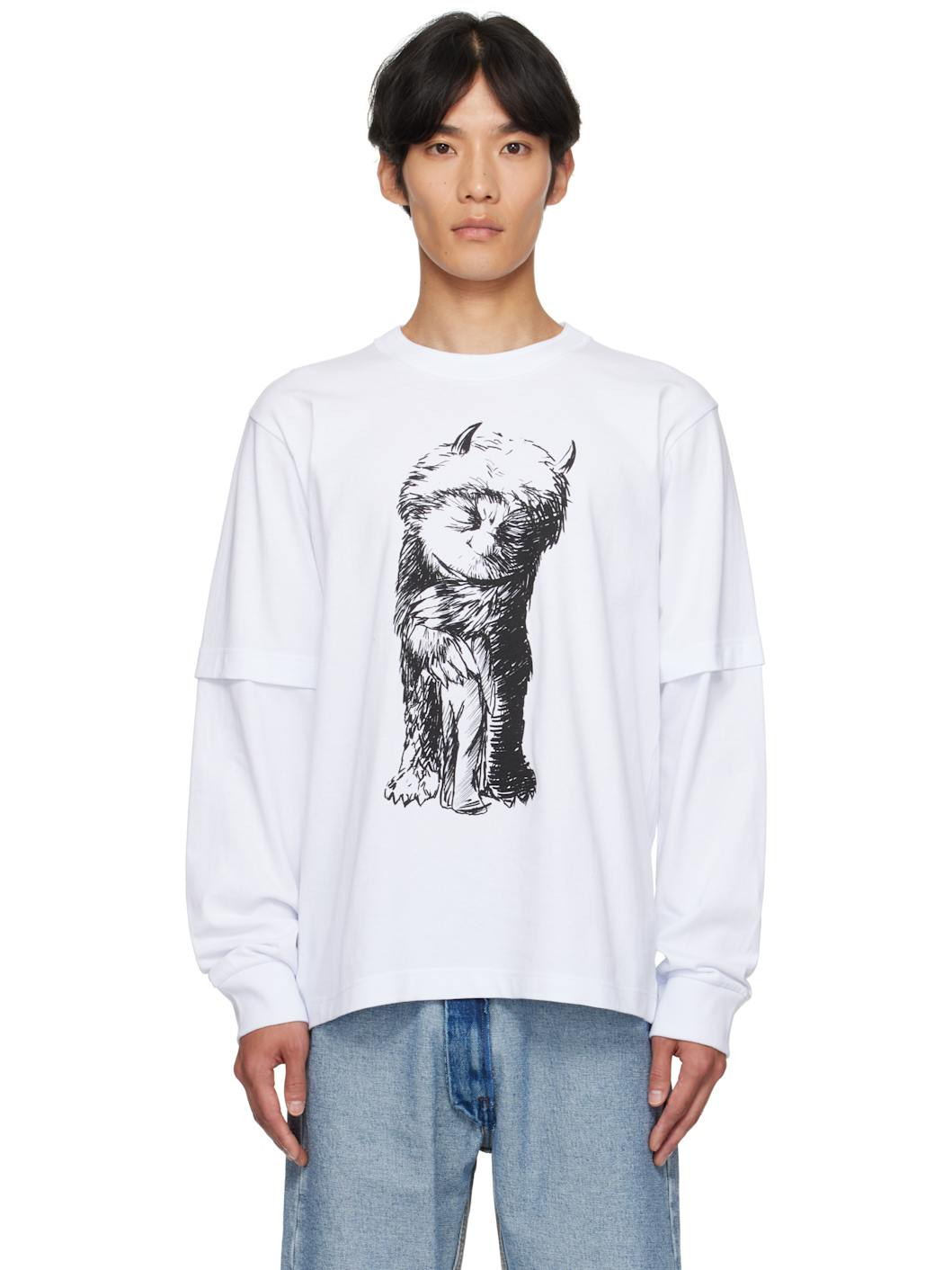 Cotton jersey T-shirt. · Rib-knit crewneck and cuffs · Graphic printed at front · Layered sleeves · Logo and text printed at back Part of the Where The Wild Things Are capsule. Supplier color: White Body: 100% cotton. Trim: 100% rayon. Made in Japan 252445M213030