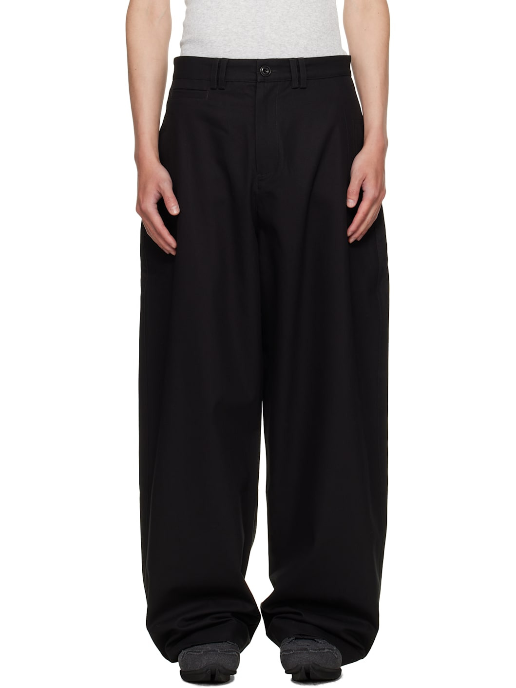 Cotton twill trousers. · Wide-leg · Belt loops · Four-pocket styling · Zip fly · Inverted box pleat at front legs Supplier color: Black 100% cotton. Made in United Kingdom 252654M191001