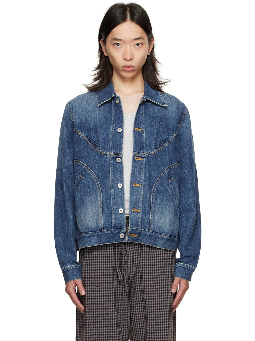 curved-panel denim jacket