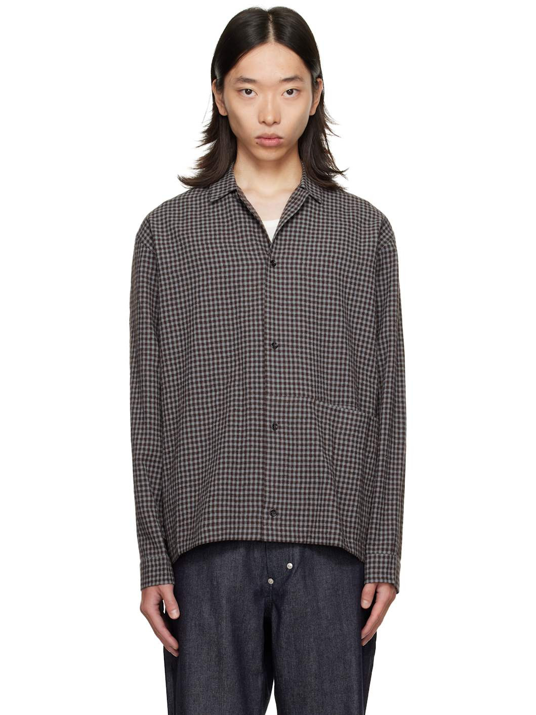 Cotton- and wool-blend seersucker shirt. · Check pattern throughout · Spread collar · Button closure · Welt pocket at front · Buttoned barrel cuffs Supplier color: Mint gingham check 70% cotton, 30% wool. Made in United Kingdom 252654M192000