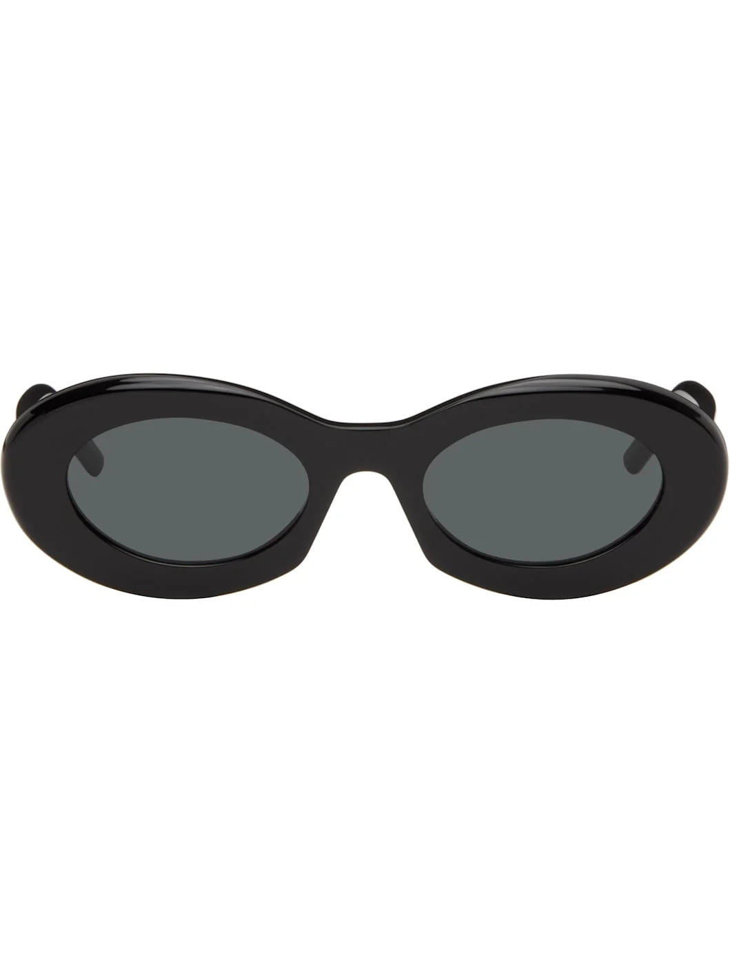 Oval acetate-frame sunglasses. · Gray lenses, category 3 · Integrated nose pads · Logo etched at temples · Includes case · Size: 52.22 140 Supplier color: Black Acetate. Made in Italy 261418F005013