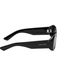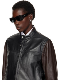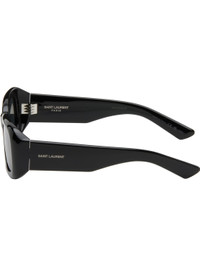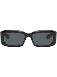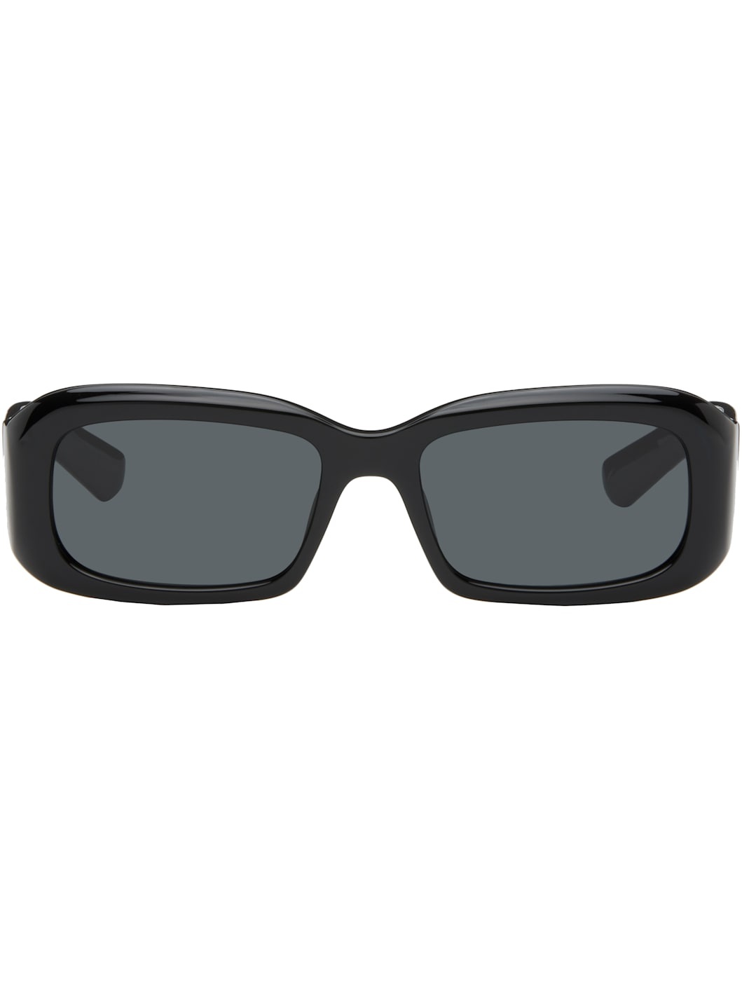 Rectangular acetate-frame sunglasses in black. · Gray lenses, category 3 · 100% UVA/UVB protection · Integrated nose pads · Logo stamp at temples · Includes case · Size: 55.18 135 Supplier color: Black Acetate. Made in Italy 252418F005016