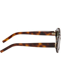 Oval semi-transparent tortoiseshell acetate-frame sunglasses. · Green lenses · 100% UVA/UVB protection · Integrated nose pads · Logo hardware at temples · Exposed core wires · Includes pouch · Size: 52.22 140 Supplier color: Medium havana/Light gold/Green Acetate. Made in Italy 252418F005084