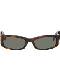 Rectangular semi-transparent tortoiseshell acetate-frame sunglasses. · 100% UVA/UVB protection · Gray lenses, category 3 · Integrated nose pads · Logo hardware at temples · Core wires · Includes case · Size: 55.19 135 Supplier color: Havana Acetate. Made in Italy 261418F005003
