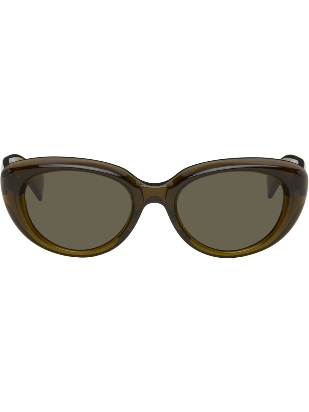 Cat-eye round semi-transparent acetate-frame sunglasses. · 100% UVA/UVB protection · Gray lenses, category 3 · Logo etched at temples · Core wires · Includes case · Size: 53.20 145 Supplier color: Brown/Brown/Grey Acetate. Made in Italy 261418F005033