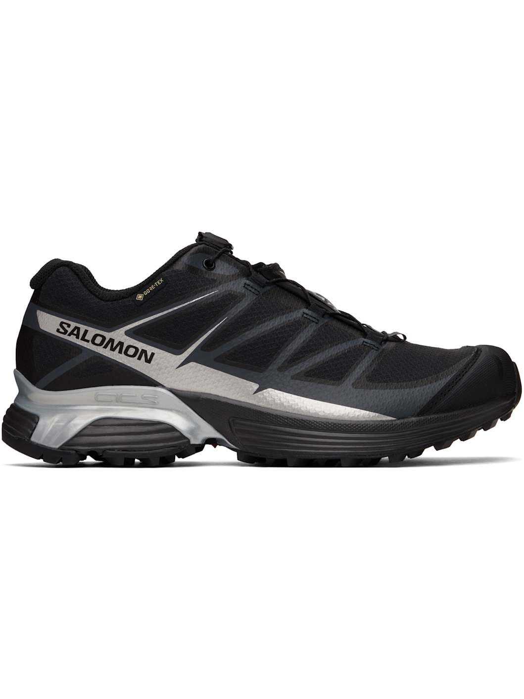 Low-top mesh sneakers in black. · Waterproof PFC-free GORE-TEX™ membrane · Reflective trim throughout · Rubber cap toe · Quicklace™ closure · Logo patch at vamp · Logo-woven pull-loop at padded tongue · Padded collar · Logo printed at sides · Bonded SensiFit™ panel at sides · Logo flag at outer side · Molded OrthoLite® footbed · Mesh lining · Agile Chassis™ System at foam rubber EnergyCell midsole · Treaded Mud Contagrip® rubber sole Supplier color: Black/Ftw silver Upper: textile. Sole: rubber. Made in Viet Nam 251837M237064