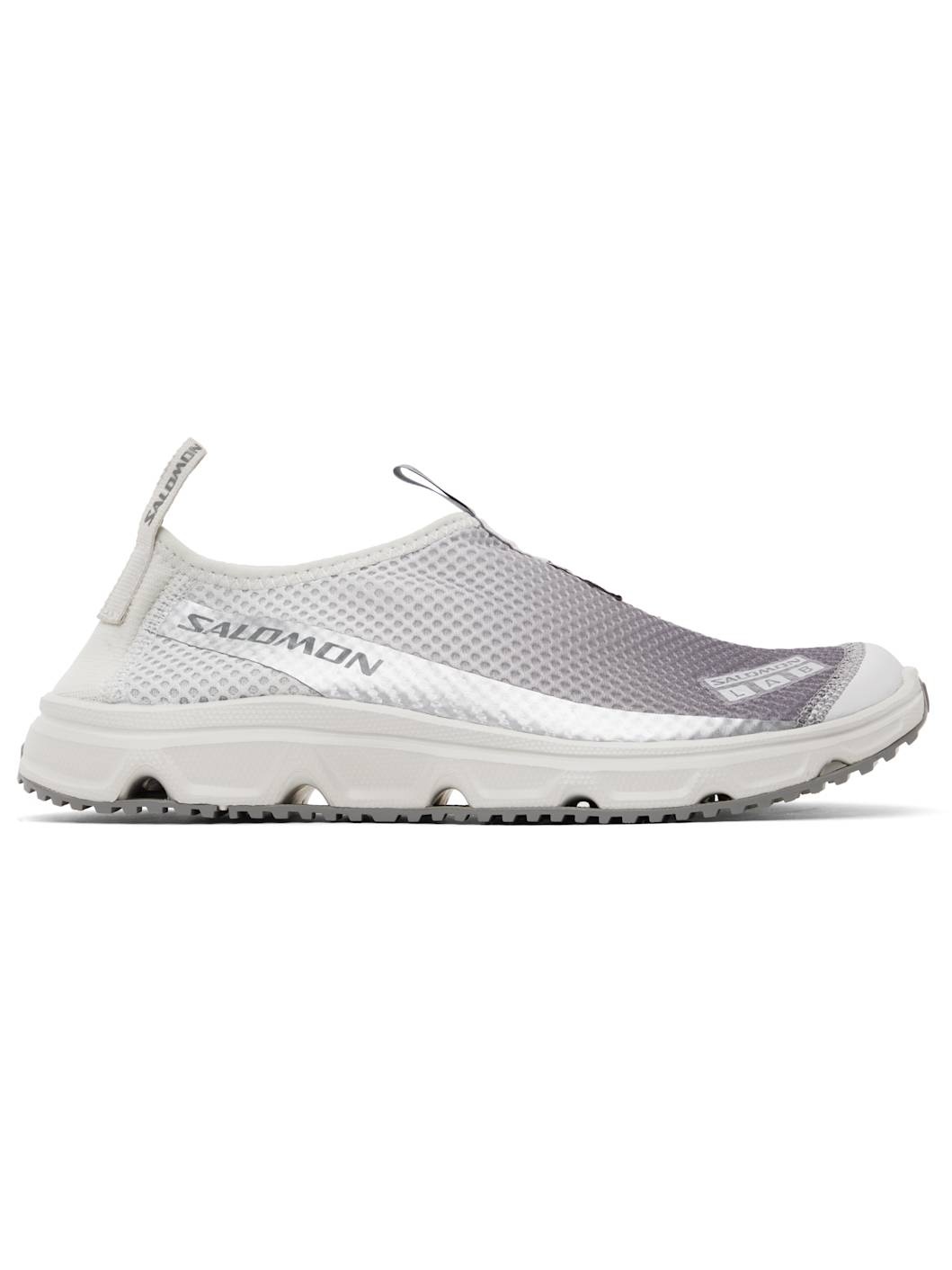 Low-top lightweight mesh slip-on sneakers in gray. · Rubber cap toe · Logo-embroidered pull-loop at vamp · Elasticized collar · Logos bonded at outer side · Logo-bonded pull-loop at heel tab · Perforated detailing at molded leather footbed · Treaded All Terrain Contagrip® rubber sole Supplier color: Glacier gray/Sharkskin/Silver metallic Upper: textile. Sole: rubber. Made in Cambodia 251837M237091