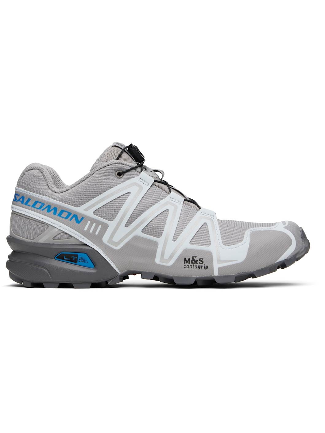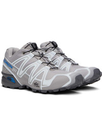 Low-top mesh and buffed faux-leather sneakers in gray. · Reflective trim throughout · Quicklace™ closure · Logo patch at vamp and tongue · Padded tongue and collar · Logo printed at outer side · sensiFIT™ panel at sides · Molded OrthoLite® footbed · Mesh lining · Foam rubber midsole · Treaded Mud Contagrip® rubber sole Supplier color: Alloy/Ballad blue/Castlerock Upper: textile, synthetic. Sole: rubber. Made in Viet Nam 251837M237029