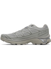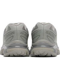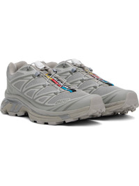Low-top lightweight mesh sneakers in gray. · Bonded trim throughout · Logo embossed rubber cap toe · Quicklace™ closure · Logo patch at vamp · Logo patch at padded tongue · Padded collar · Bonded SensiFit™ panel at sides · Logo printed at outer side · EndoFit™ mesh lining · Molded OrthoLite® insole · Agile Chassis™ System at rubber EnergyCell midsole · Treaded Mud Contagrip® rubber sole Supplier color: Ghost gray/Gray flannel Upper: textile. Sole: rubber. Made in Cambodia 251837F128055