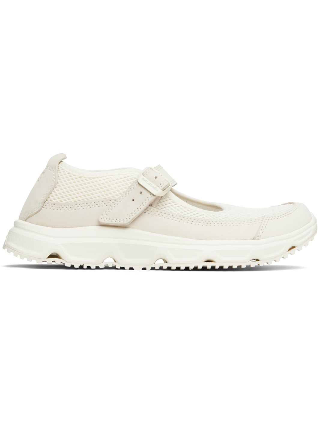 Mesh and nubuck Mary Jane-style loafers in off-white. · Pin-buckle strap at vamp · Jersey trim at collar · Pull-tab at heel collar · Logo embossed at heel tab · Faux-suede lining · Treaded Contagrip® rubber sole Supplier color: Vanilla ice Upper: textile, leather. Sole: rubber. Made in Viet Nam 252837F128018