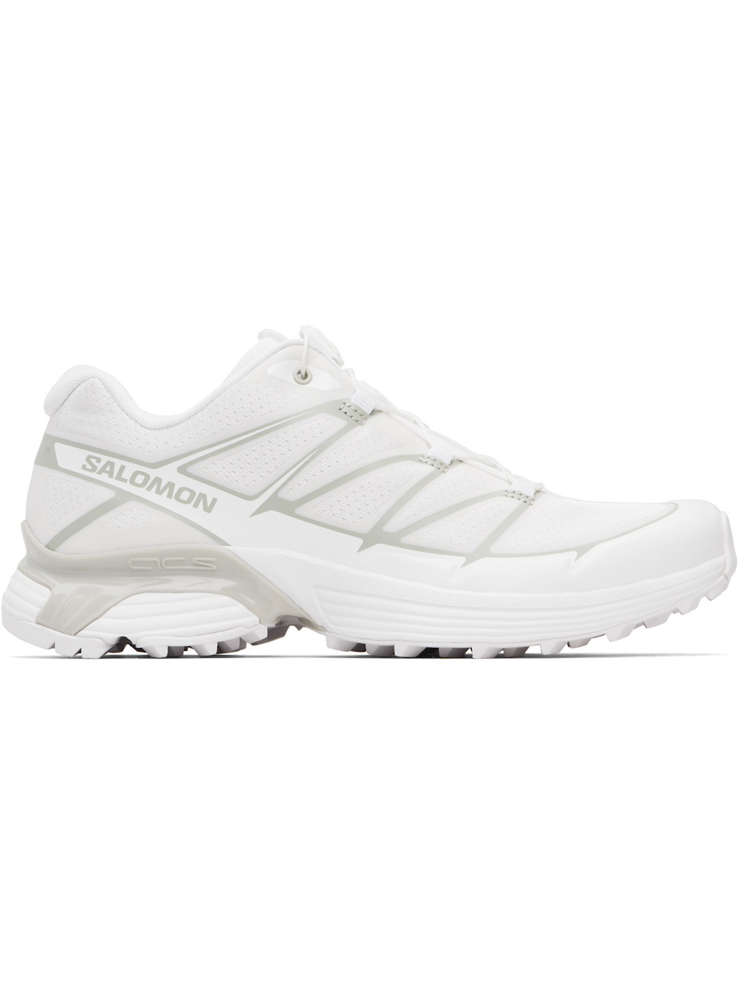 Low-top anti-debris mesh sneakers. · Bonded trim throughout · Logo-embossed rubber cap toe · Quicklace™ closure · Logo-woven pull-loop at padded tongue · Padded collar · Bonded sensiFIT™ panel at sides · Text printed at inner side · Logo printed at outer side · Molded OrthoLite® footbed · Mesh lining · Agile Chassis™ System at rubber EnergyCell midsole · Treaded Mud Contagrip® rubber sole Supplier color: White/White/Metal Upper: textile. Sole: rubber. Made in Viet Nam 252837M237033