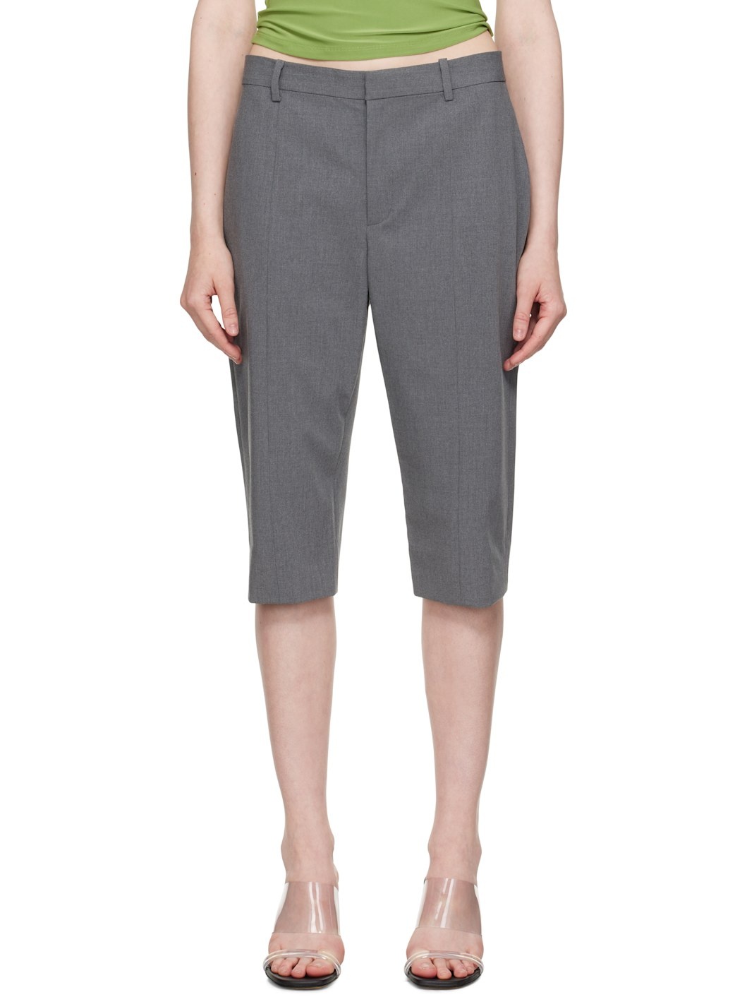 Lightweight stretch polyester- and rayon-blend broadcloth shorts. · Mid-rise · Belt loops · Zip fly · Vent at back cuffs Supplier color: Grey Body: 57% polyester, 29% rayon, 10% wool, spandex. Lining: 100% viscose. Made in United States 251677F087003
