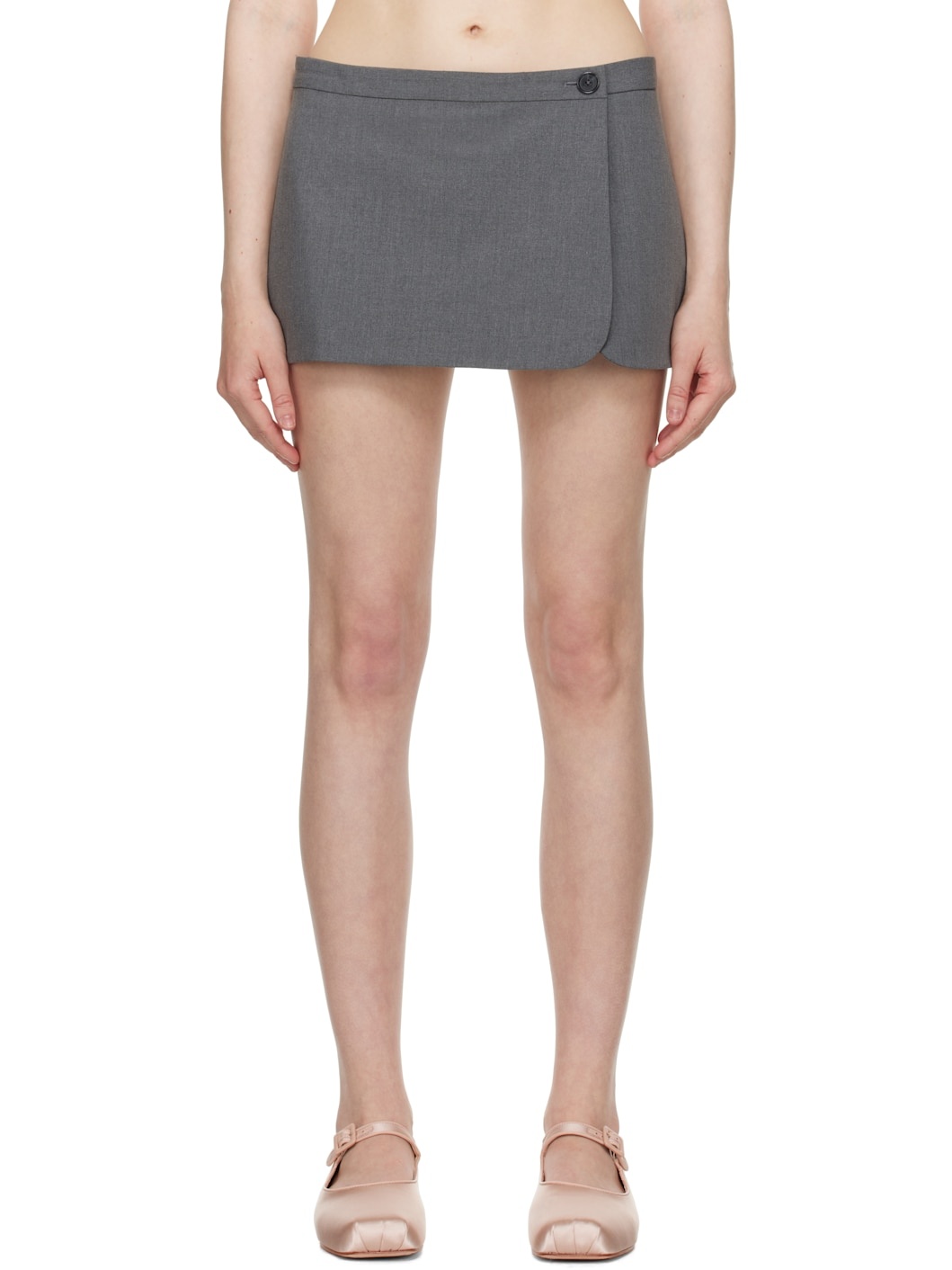 Lightweight stretch polyester- and rayon-blend twill skort. · Wrap construction · Low-rise · Button fastening at waistband · Single-pocket styling · Concealed zip fly · Darts at back · Logo-woven viscose twill lining Supplier color: Grey Body: 57% polyester, 29% rayon, 10% wool, 4% spandex. Lining: 100% viscose. Made in United States 251677F088004