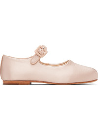 Satin Mary Jane-style ballerina flats in pink. · Square toe · Partially elasticized pin-buckle strap at vamp · Buffed leather trim at collar and heel · Stacked leather heel with rubber injection · Nubuck sole Supplier color: Ballet satin Upper: textile, leather. Sole: rubber. Made in Brazil 251677F118004