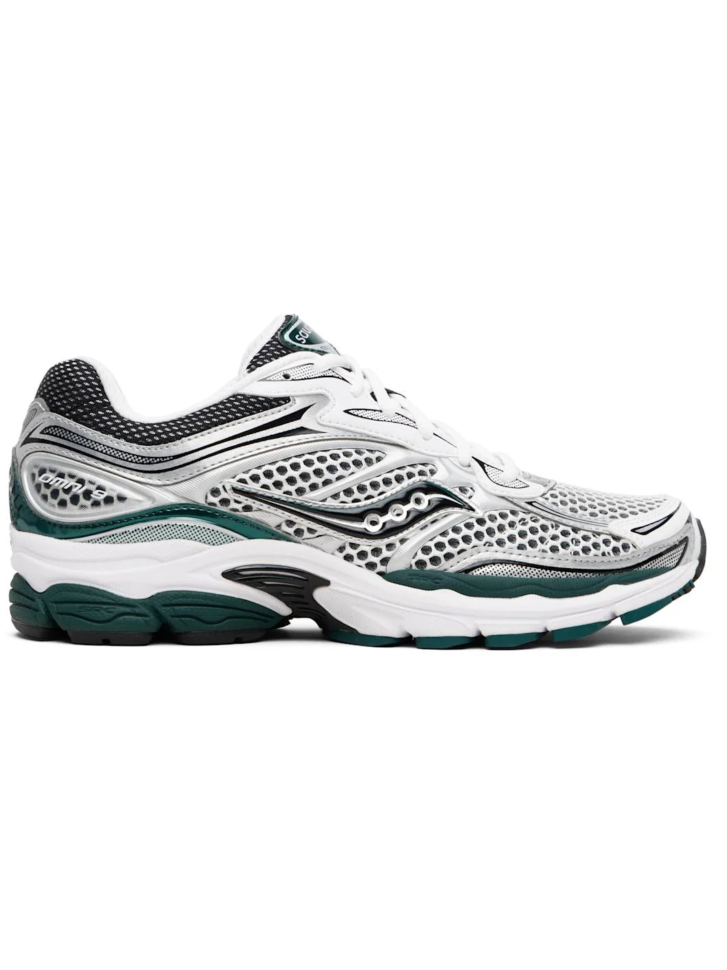 Low-top mesh and buffed faux-leather sneakers. · Logo printed at vamp and heel tab · Lace-up closure · Logo patch at padded tongue · Padded collar · Logo applique at sides · Mesh lining · ProGrid foam rubber midsole · Treaded rubber sole Supplier color: White/Pine green Upper: textile, synthetic. Sole: rubber. Made in Indonesia 261921M237030