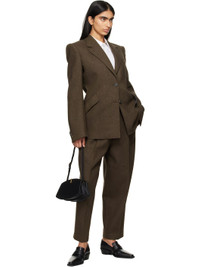 Buffed calfskin shoulder bag in black. · Adjustable shoulder strap · Gold-tone hardware at face · Accordion panel at sides · Logo stamp at back face · Magnetic tab closure · Card slot at two-compartment interior · Buffed calfskin lining · H5.75" x W10.75 x D4" Supplier color: Black 100% calfskin. Made in Italy 251163F048005