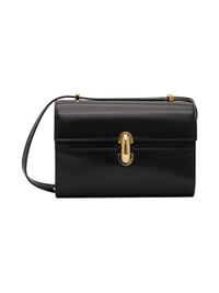 Polished calfskin shoulder bag in black. · Adjustable sliding crossbody strap · Turn-lock flap · Patch pocket at two-compartment interior · Buffed calfskin lining · H5.25" x W7.5" x D2.75" Supplier color: Black 100% calfskin. Made in Italy 251163F048000