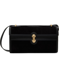 Calfskin suede shoulder bag in black. · Buffed calfskin trim throughout. · Convertible crossbody strap · Bumper studs at base · Turn-lock flap · Patch pocket at interior · Buffed calfskin lining · H5.5" x W10" x D3" Supplier color: Black Calfskin. Made in Italy 251163F048012