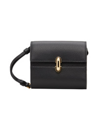 Grained calfskin shoulder bag in black. · Adjustable and detachable crossbody strap · Press-stud flap · Six card slots at interior · Buffed leather lining · Gold-tone hardware · H4.5" x W4.75" x D1.5" Supplier color: Black Calfskin. Made in Italy 242163F048003