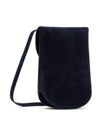 Handcrafted calfskin suede shoulder bag in navy. · Adjustable and detachable crossbody strap · Logo embossed at back face · Hardware at magnetic flap · Card slot at interior · H7.5" x W6" x D2" Supplier color: Navy Calfskin. Made in Italy 242163F048008