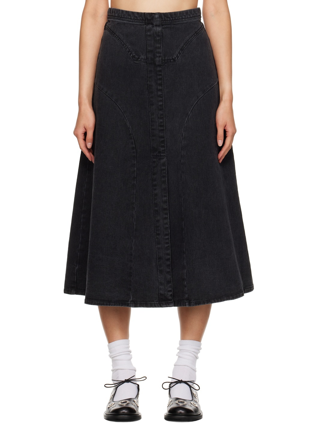 Non-stretch denim midi skirt. · Paneled construction · Central vent at front hem · Zip closure at back waistband Supplier color: Black 100% cotton. Made in India 242271F092001