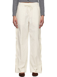 Relaxed-fit plain-woven cotton- and linen-blend trousers. · Drawstring at elasticized waistband · Four-pocket styling · Mock fly · Button vent and scalloped edge at outseams Supplier color: Cream 85% cotton, 15% linen. Made in India 251271F087001