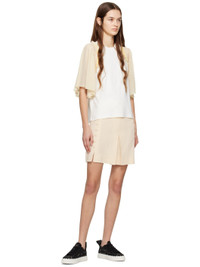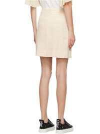 Polyester crepe skirt. · Inverted box pleat at front · Button vent at outseam · Zip closure at back Supplier color: Light ivory 100% polyester. Made in Romania 231373F090002