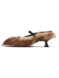 Beige & Brown Faux Fur Grip Mule Heels
