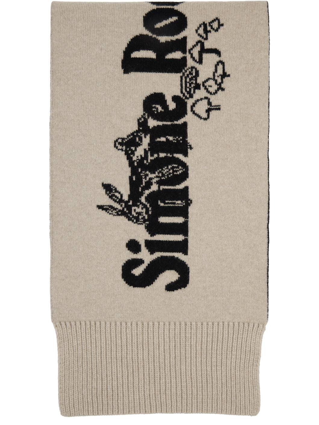 Black & Beige Long Graphic Logo Knit Scarf