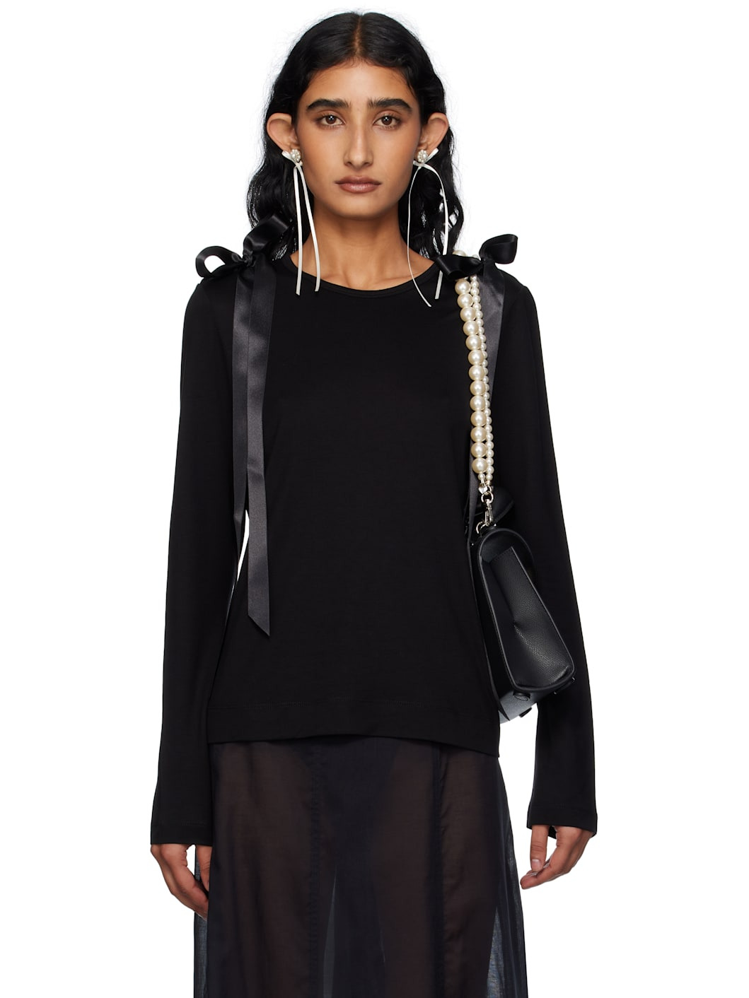 Black Bow Ribbon Tail Long Sleeve T-shirt