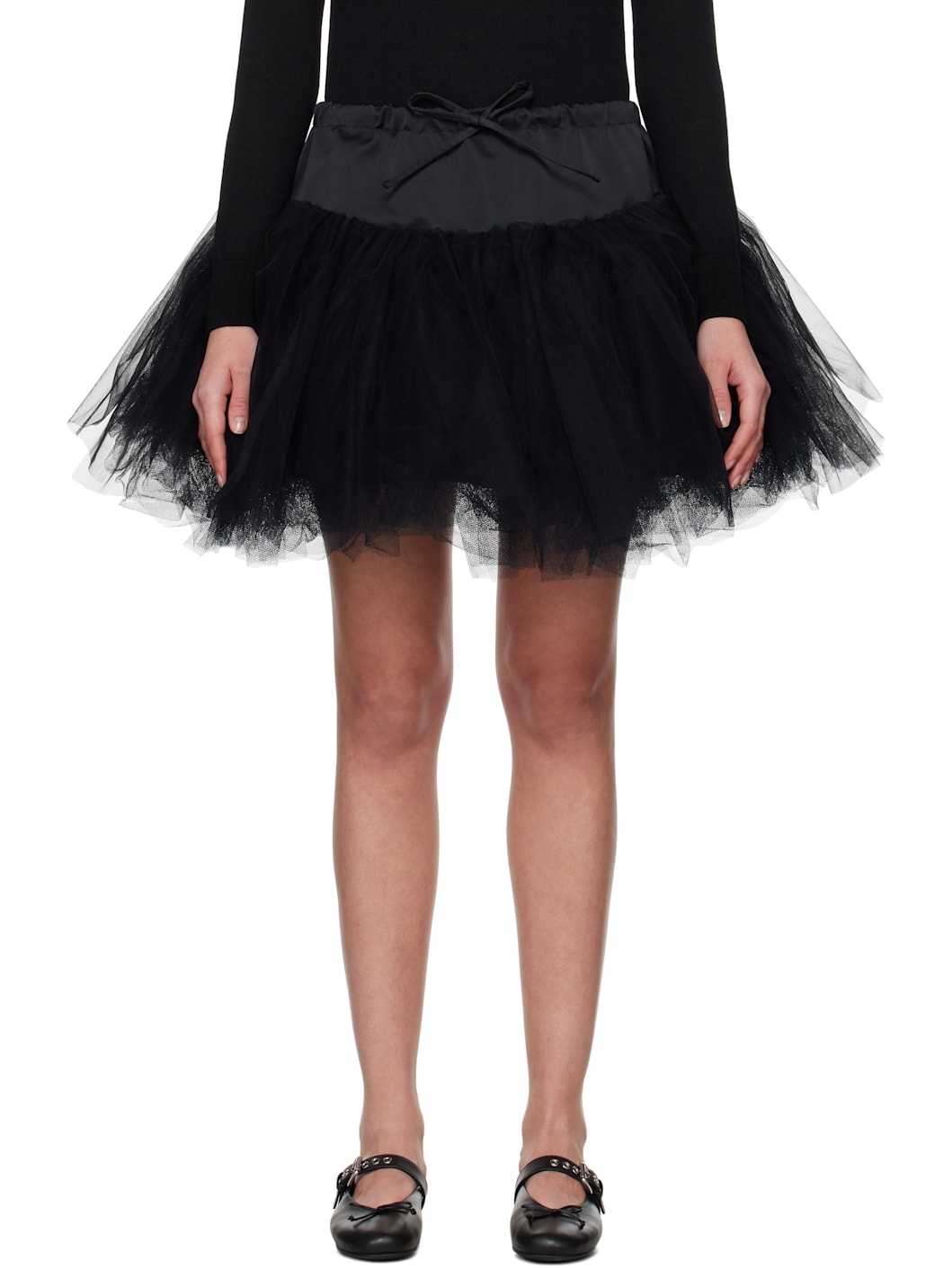 Acetate- and silk-blend satin miniskirt. Tulle ruffles and gathering throughout. · Layered and tiered construction · Drawstring at elasticized waistband · Full satin lining Supplier color: Black Body 1: 100% nylon. Body 2: 100% polyamide. Body 3: 73% acetate, 27% silk. Lining: 60% acetate, 40% cupro. Made in Portugal 251405F090003