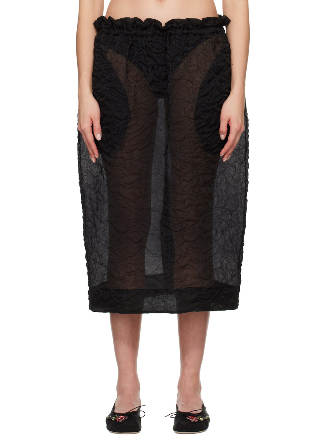 Sheer cotton- and nylon-blend cloque midi skirt. · Ruffled edge at elasticized waistband · Two-pocket styling · Central vent at back hem · Unlined Supplier color: Black Body: 44% cotton, 33% polyamide, 23% polyester. Trim: 100% silk. Lining: 60% acetate, 40% viscose. Made in Portugal 251405F092016