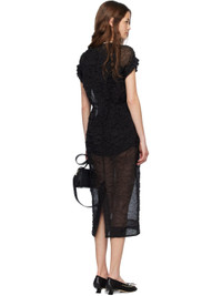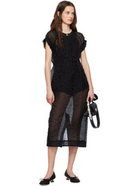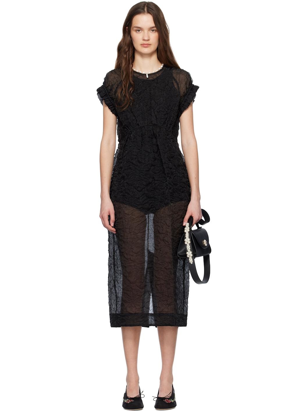 Semi-sheer cotton-blend cloque midi dress. Jacquard floral pattern throughout. · Crewneck · Gathering at waist · Seam pockets · Raglan sleeves · Elasticized cuffs · Zip closure at back · Central vent at back hem Supplier color: Black Body: 44% cotton, 33% polyamide, 23% polyester. Lining: 60% acetate, 40% viscose. Made in Portugal 251405F054024