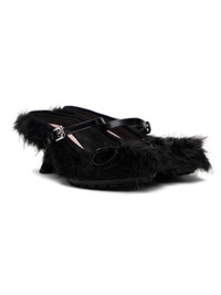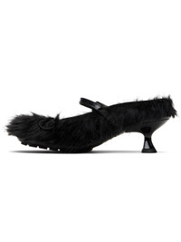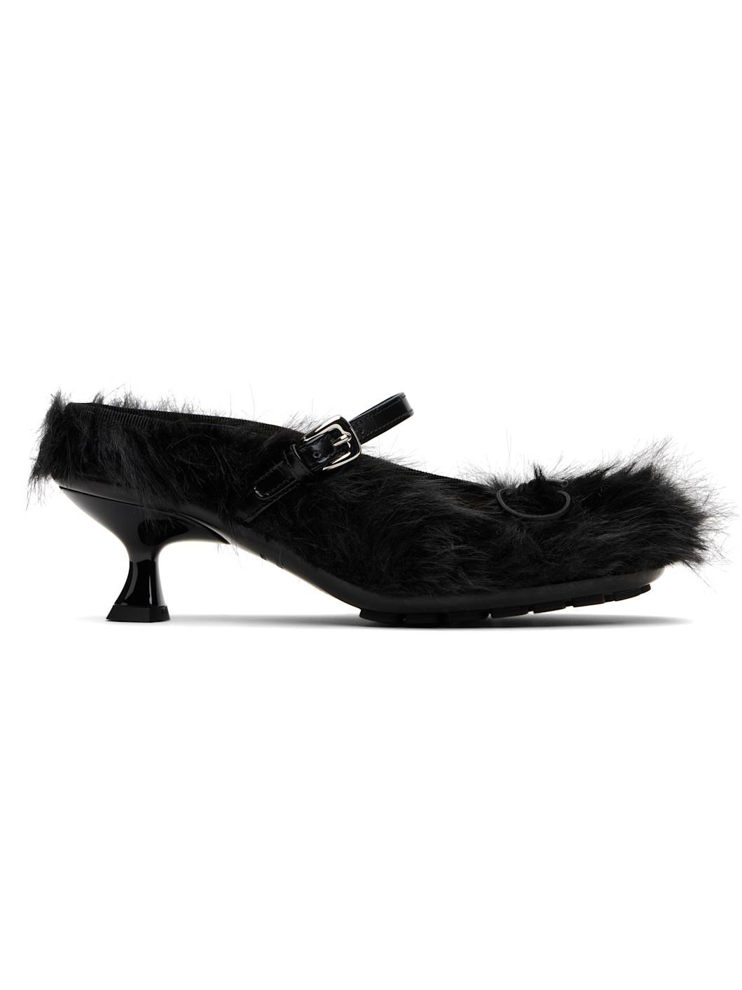 Faux-fur heels. · Elasticized bow accent at vamp · Grosgrain trim at collar · Polished leather pin-buckle strap · Logo stamp at padded leather footbed · Leather lining · Rubber spool heel · Treaded rubber sole · Heel: H2" Supplier color: Black Upper: textile. Sole: rubber. Made in Portugal 252405F122005